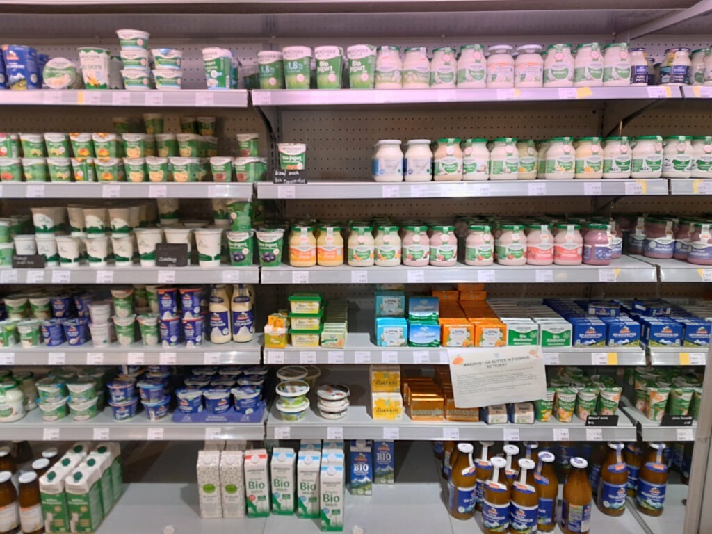 Das Sortiment des FoodHub München besteht zu 100 Prozent aus Bioware! Die Produktpalette ist solide, von der Windel bis Frischfleisch gibt es eine große Auswahl.