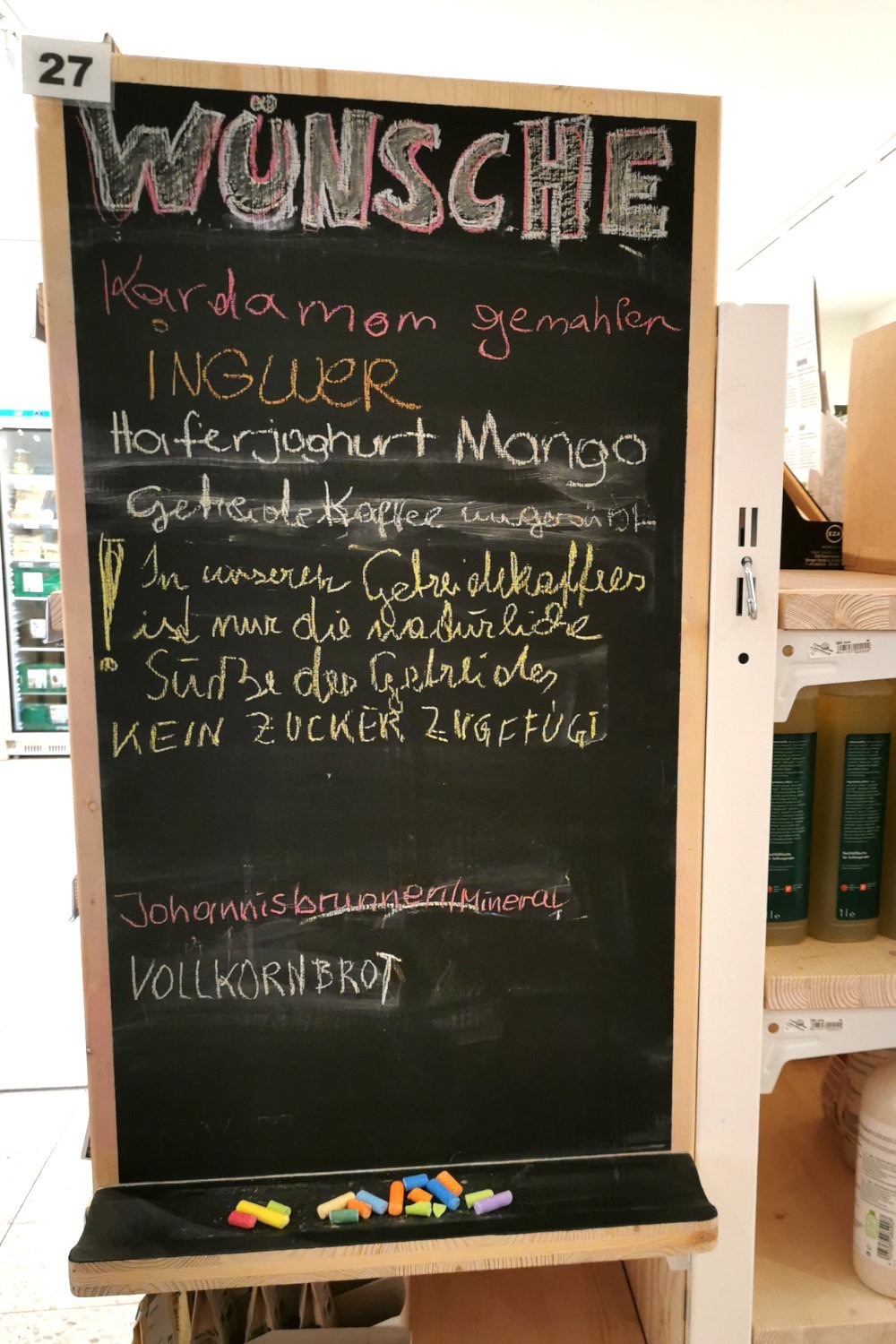 Mitglieder können auch aus dem gesamten Sortiment von BioGast bestellen. Wer ganze Einheiten nimmt bekommt noch zusätzlich einen Rabatt, da dies dann nicht ins Regal eingeräumt wird. Vor allem auch Dinge, die es nicht zu kaufen gibt im Genossenschaftsgeschäft – da der Regalplatz einfach beschränkt ist.