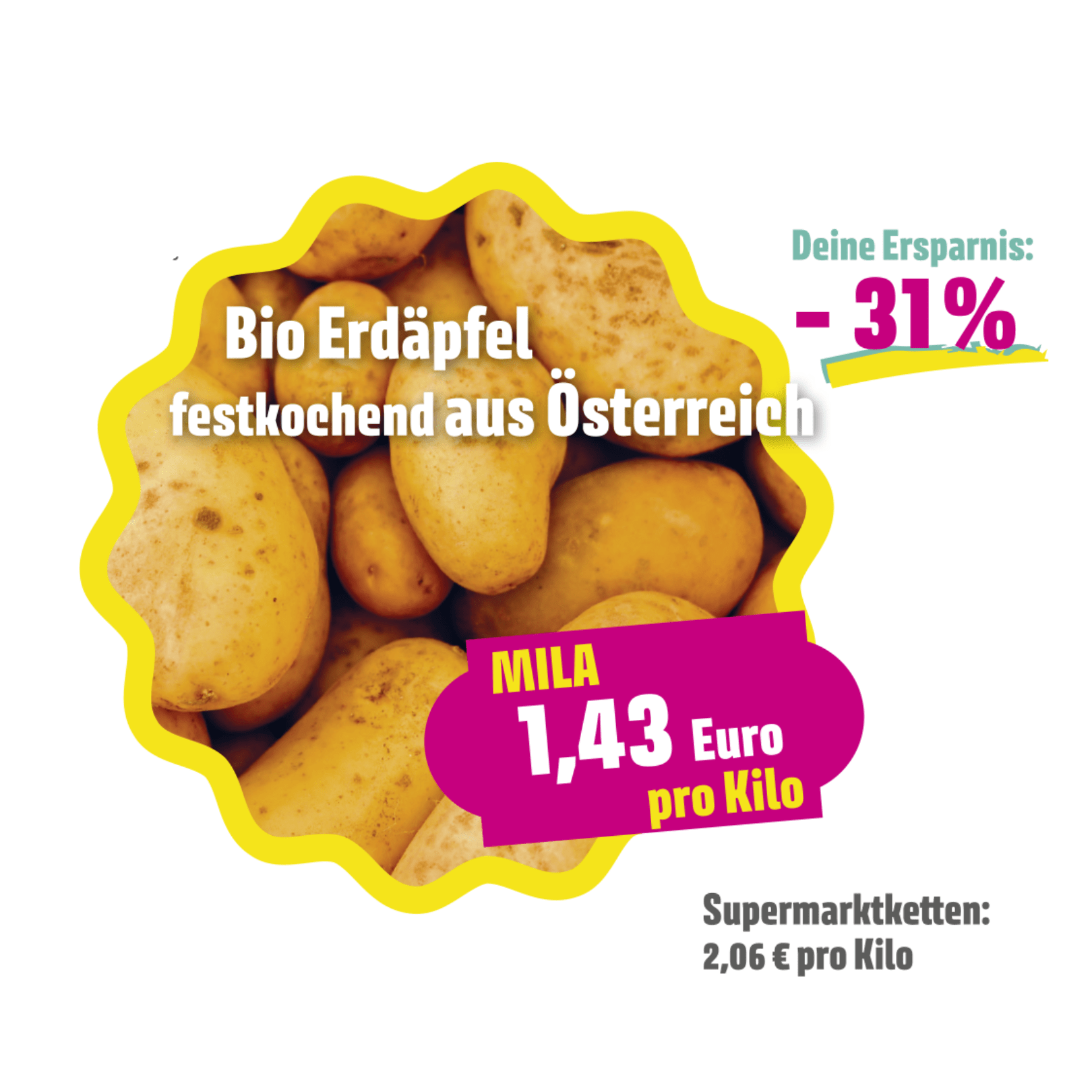 The price comparisons were carried out in February 2024. We compared exactly comparable or identical products as they can be found in 2 to 3 large supermarket chains. Prices are valid for MILA members. Prices valid until at least 31 March 2024