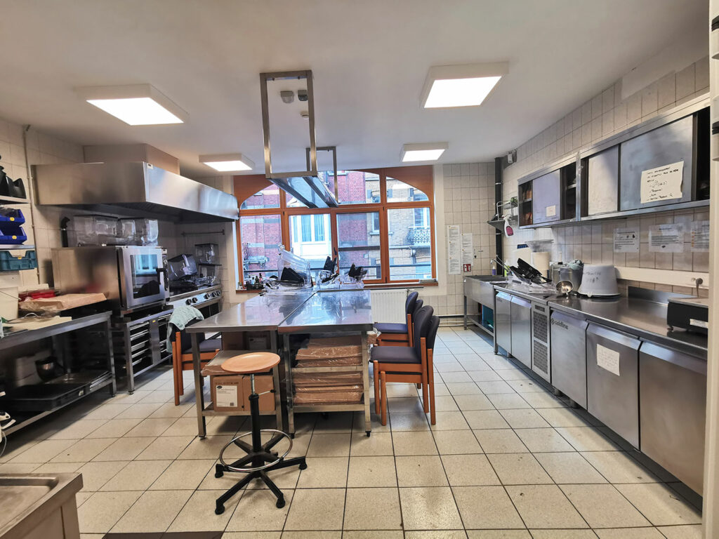 Im ersten Stock gibt es auch eine Gastroküche: Für die Gemeinschaft, für die Nachbarschaft, um beispielsweise Kochkurse für gutes Essen anzubieten. Und vielleicht auch um die nicht verkaufte Ware selbst zu verwerten. Für die vorhandene Gastroküche im ersten Stock gibt es viele Pläne, aber noch keine Zeit diese umzusetzen – in den letzten Jahren waren sie einfach damit beschäftigt den Supermarkt ins Laufen zu bringen.