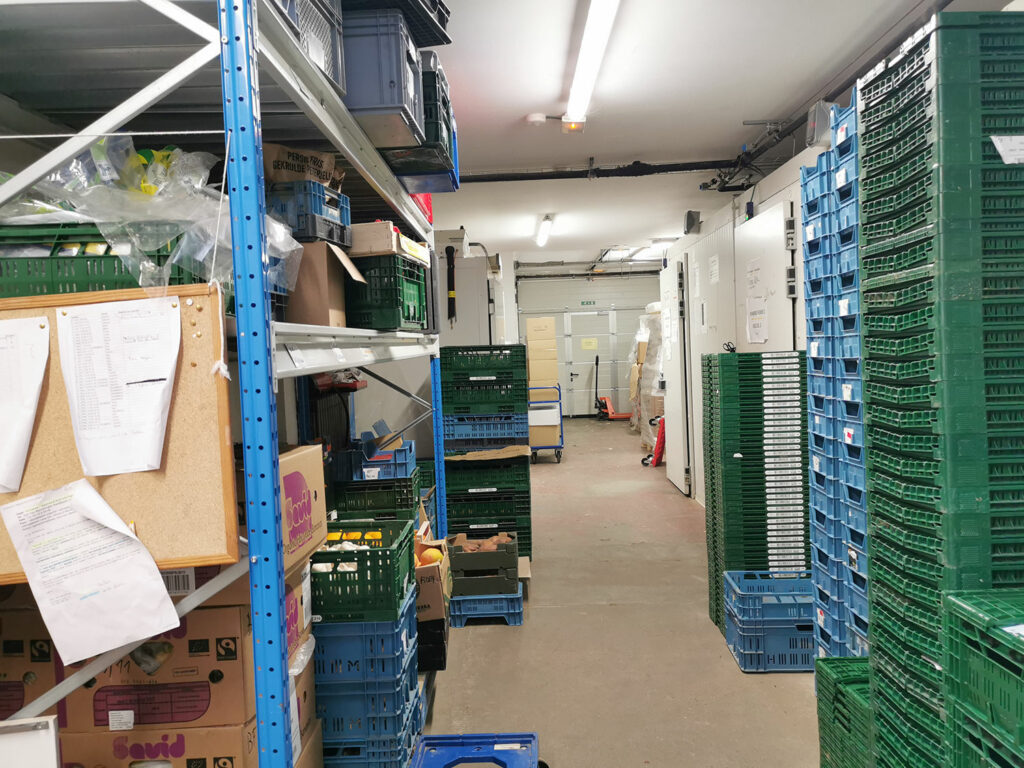 Die Anlieferung erfolgt teils in der Nacht. Die Lieferant:innen haben dafür Zugang zu Lager und Kühlräumen über einen Code – somit muss niemand von der BEES coop zur Annahme vor Ort sein.