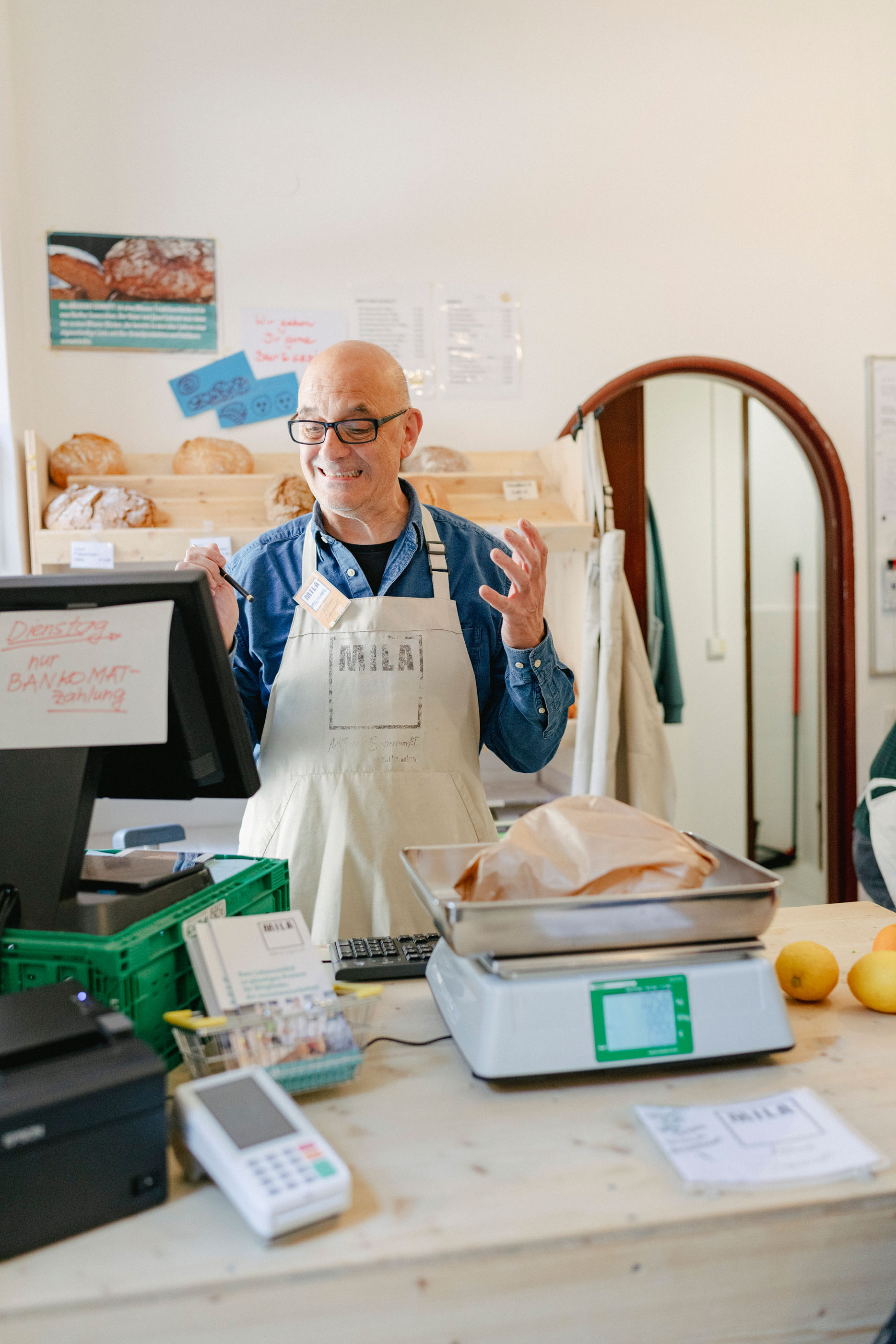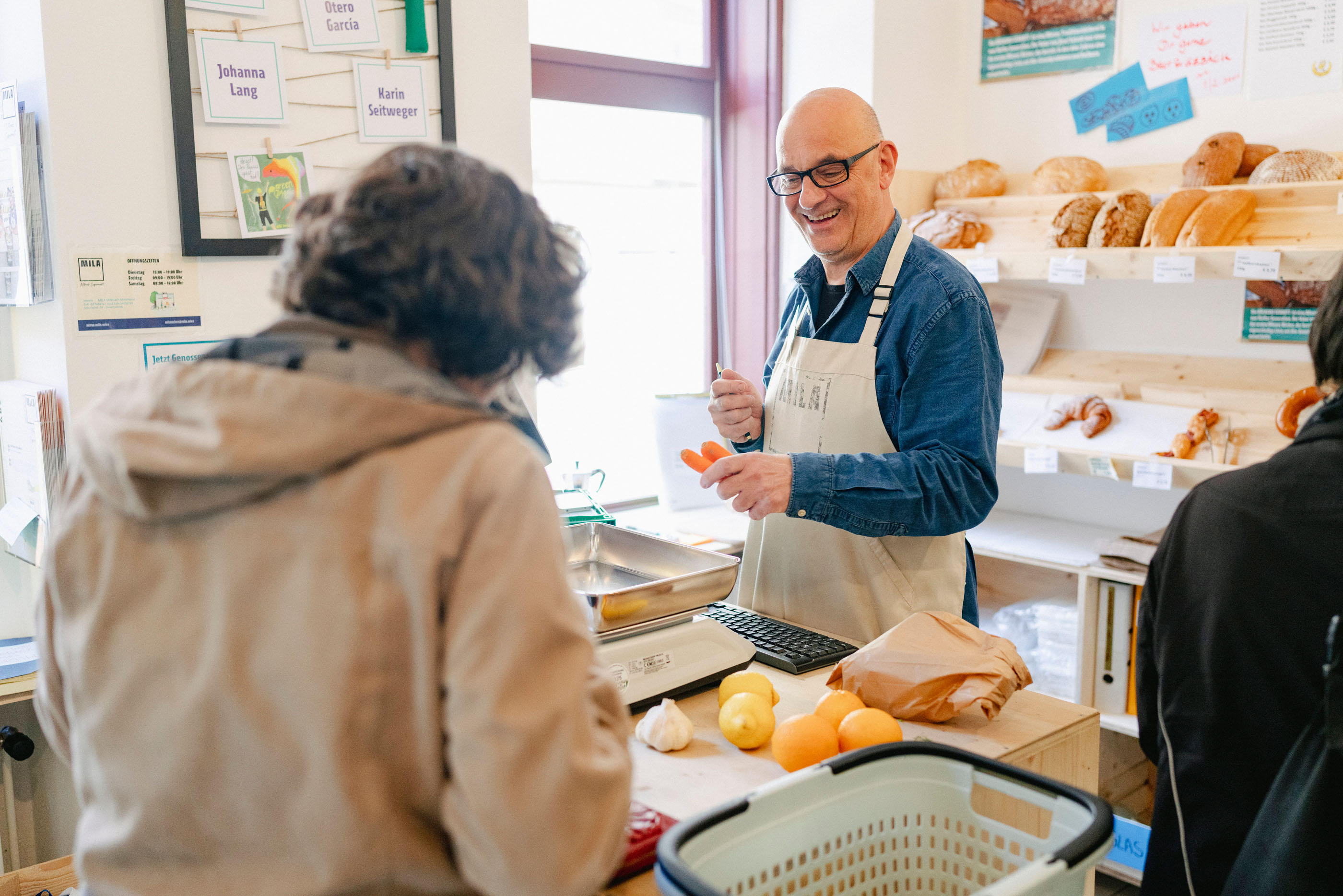 Zusätzlich zu deinem regelmäßigen Einkauf bei MILA, ist die Mitmach-Schicht dein wichtiger Beitrag: Denn deine Mitmach-Schicht macht den Unterschied: sie ermöglicht es, hochwertige Produkte zu leistbaren Preisen anzubieten. Alle aktiven Mitglieder machen 3 Stunden alle 4 Wochen im Supermarkt mit: Kassieren, Lieferscheine oder Preisschilder checken, Regale einräumen.