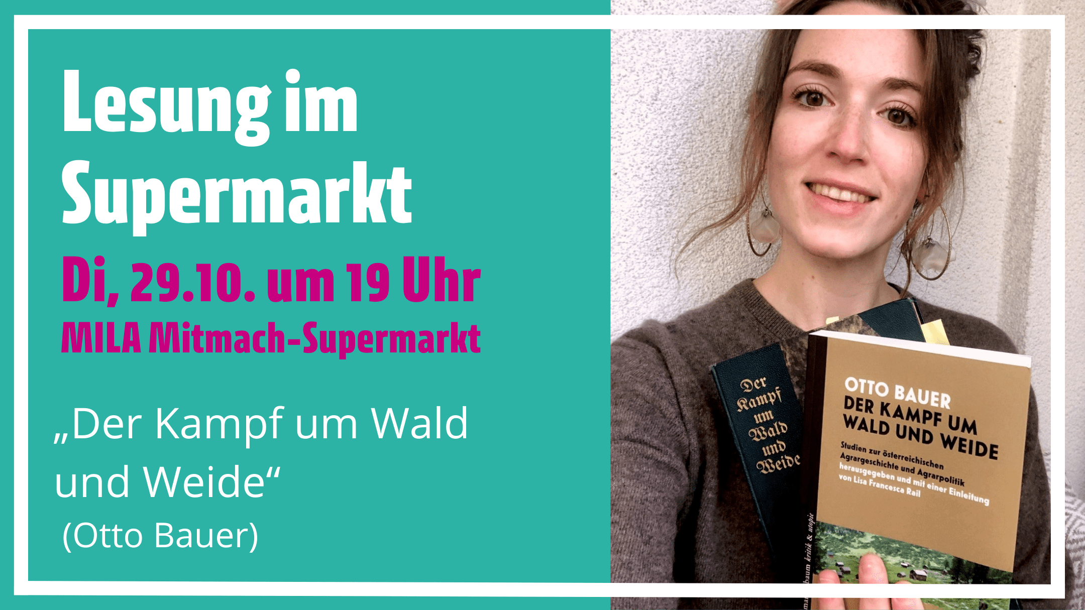 Nach dem Einkaufen bei MILA laden wir euch ein, gemeinsam mit uns in das spannende Buch „Der Kampf um Wald und Weide“ von Otto Bauer einzutauchen. Das 1925 verfasste Werk behandelt zentrale Themen wie den Zugang zu Land, Gemeinschaftsgüter und eine Landwirtschaft, die sich am Gemeinwohl orientiert. Lisa Francesca Rail wird uns in Bauers Werk einführen […]