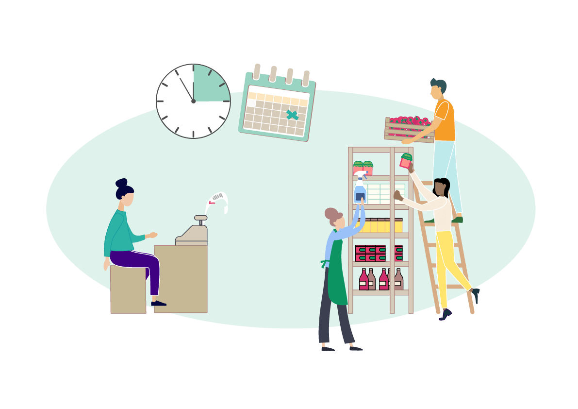 Mitbestimmen, mitmachen und einkaufen gehören bei MILA zusammen. Um als Genossenschaftsmitglied auch einkaufen zu können ist Mitarbeit Voraussetzung. Sobald der große MILA Supermarkt im Oktober 2025 eröffnet – arbeitet jedes Mitglied drei Stunden alle vier Wochen im Supermarkt mit. Mitmachen umfasst Alles, was im Supermarkt so anfällt: Regal einräumen, Lieferungen entgegen nehmen, Preisschilder anbringen, kassieren, aufräumen und vieles mehr. Man arbeitet als Team, lernt sich kennen und erlebt gesellige Kooperation. Als Mitglied kannst du eine weitere Person bestimmen, die einkaufen kommen darf – dabei ist egal, ob dieser Mensch mit dir im Haushalt lebt oder ganz woanders. Die Kinder von Mitgliedern dürfen ohnehin einkaufen kommen, bis sie 18 Jahre alt sind.